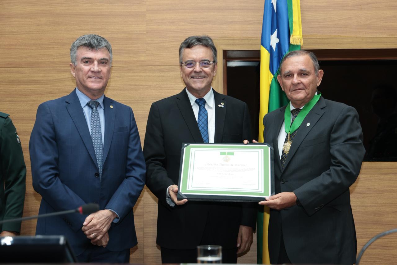 Em sessão especial realizada na manhã desta terça-feira, 28, o deputado estadual Luciano Pimentel, PL, entregou a Medalha Amigo de Sergipe, honraria concedida pela Assembleia Legislativa, ao general de Exército da reserva Artur Costa Moura, destacando sua trajetória militar e os relevantes serviços prestados ao Estado sergipano.